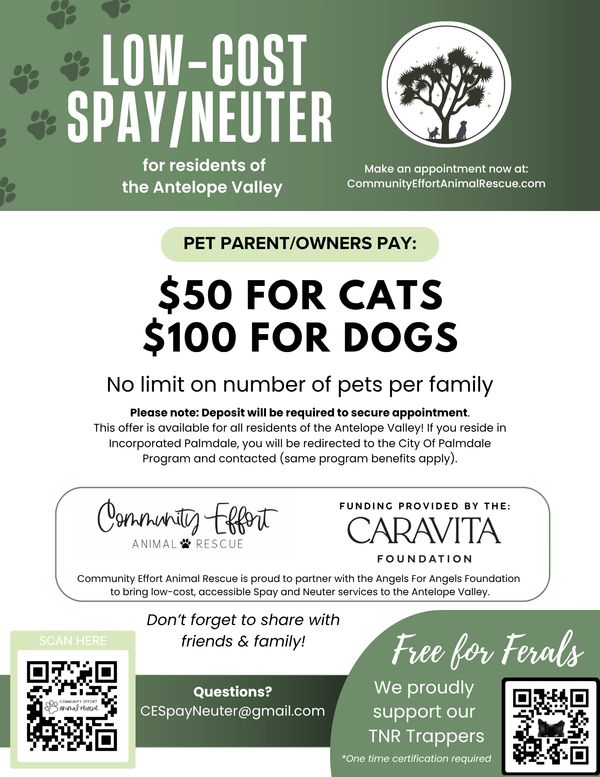 The Caravita Foundation has joined our coalition to expand access to spay and neuter services for families in Antelope Valley communities outside the incorporated City of Palmdale.